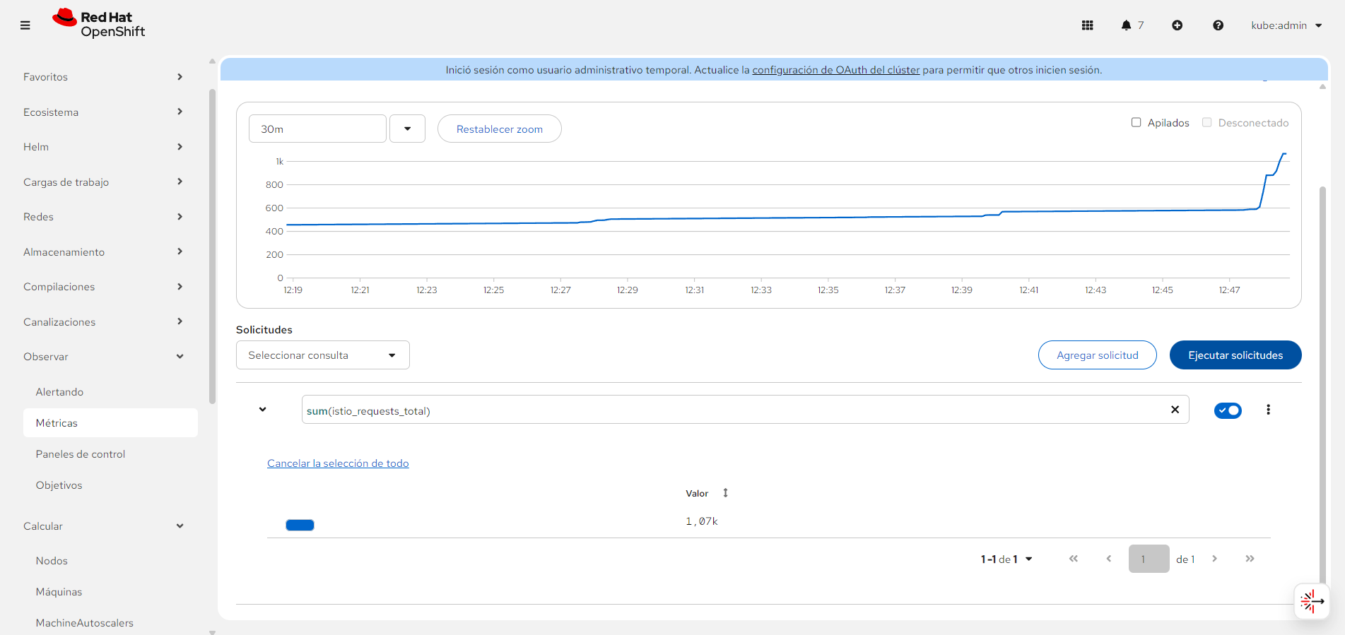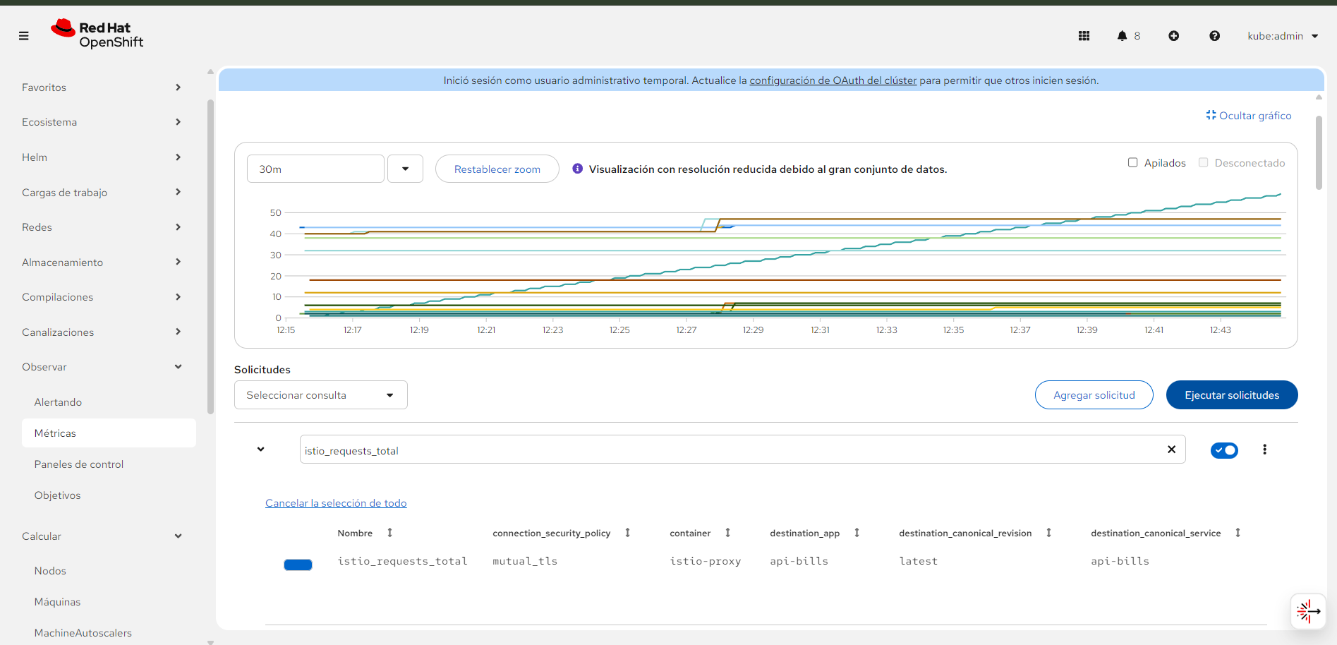 Adjust labels (e.g. destination_workload_namespace, destination_workload) to match your mesh. The observability UI (after UIPlugin is enabled and configured) can use the same metric names.