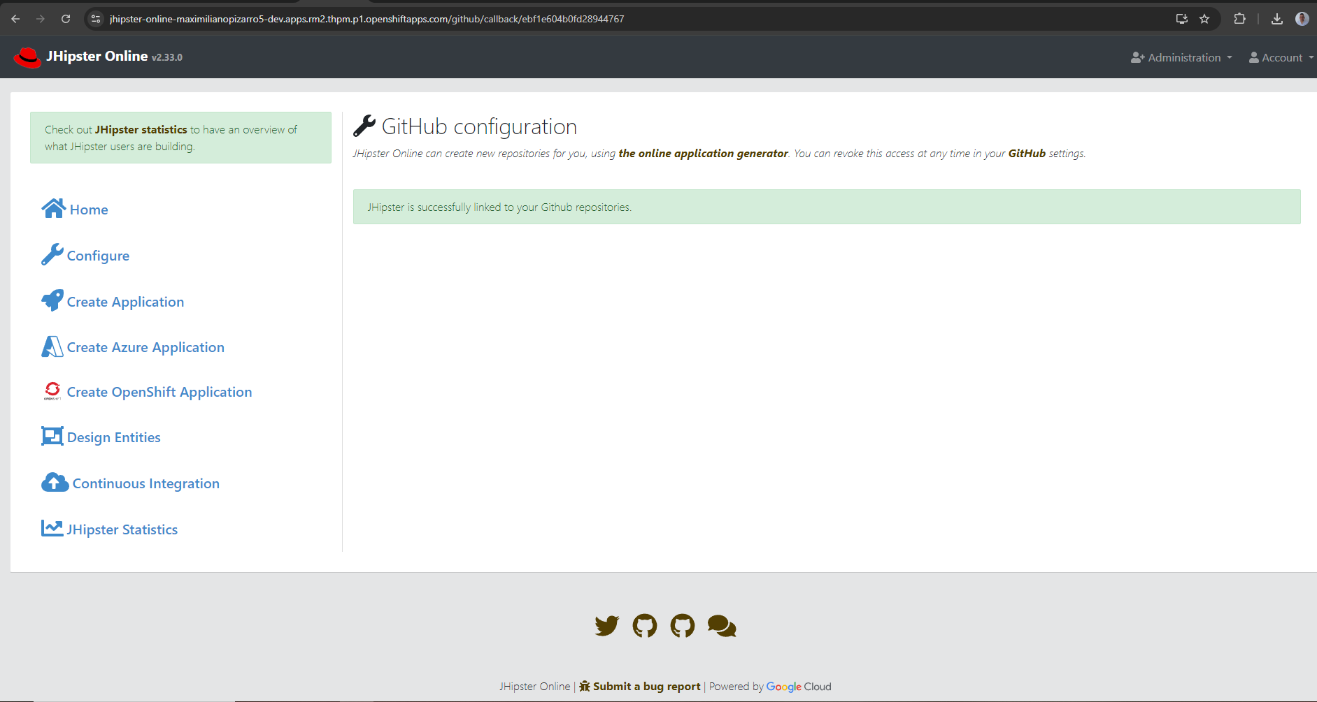 NOTE. jhipster-online name is mandatory, not use my-jhipster-online sample name. If you use other name change the configmap ngnix and rollout deployment jhipster-online.