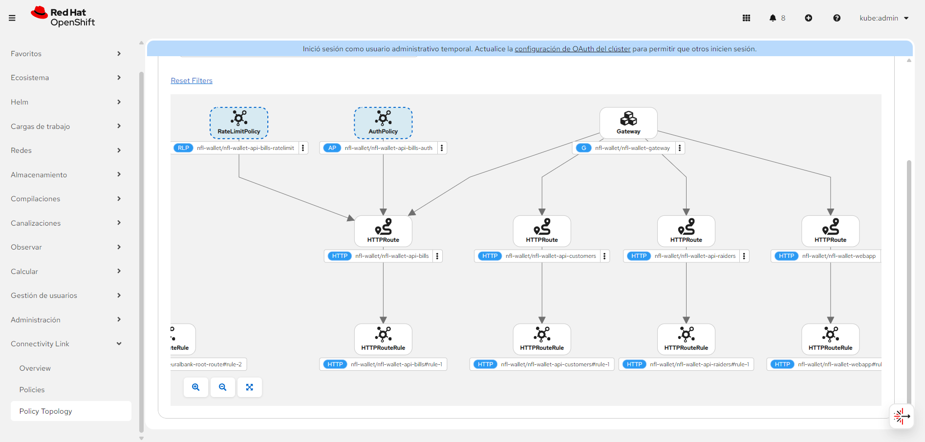 This document provides the definitive guide for deploying, configuring, and validating the Stadium Wallet ecosystem. The platform adopts a modern approach based on GitOps, Zero-Trust security without sidecars via OSSM3 (Ambient Mode), and comprehensive API lifecycle management through Kuadrant and Red Hat Developer Hub.