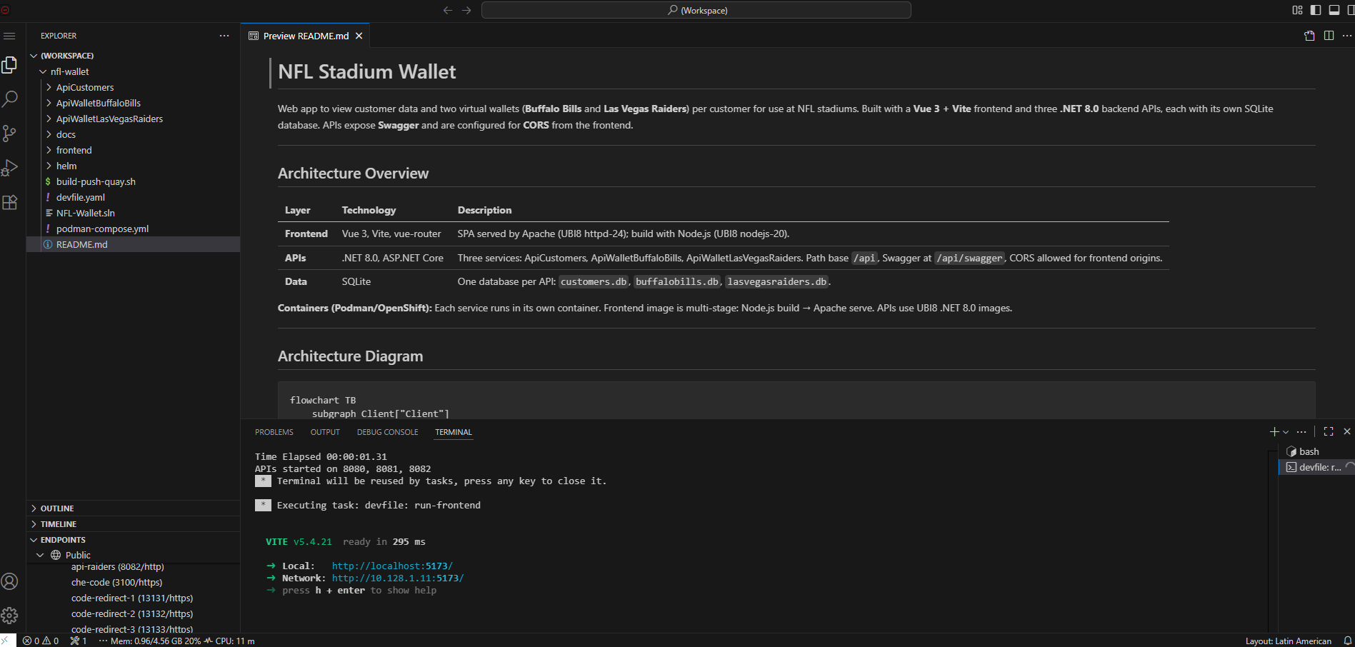 Official Installation, Testing & Architecture Guide — Complete digital wallet ecosystem for stadiums on Red Hat OpenShift.